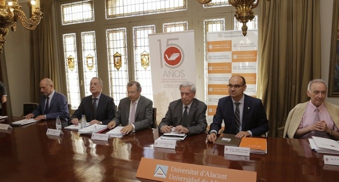 La Fundación de la Cervantes celebra este año el 15 aniversario de su constitución, y Mario Vargas Llosa ha destacado que fue en Alicante, y en concreto en su Universidad, de la que es Doctor Honoris Causa desde 2008, "donde germinó la idea que fructificó en nuestra Biblioteca Virtual y en su Fundación", expresando su felicitación "a quienes, a finales de los años noventa, idearon el proyecto que se ha convertido en uno de los espacios más importantes de difusión de la cultura en español".