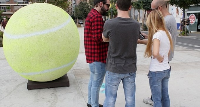 La iniciativa de hoy en la Plaza Séneca, junto a la antigua Estación de Autobuses de Alicante, consistía en la colocación de seis objetos de gran tamaño, como una pelota de tenis, un tornillo o una pluma y un tintero, para difundir la oferta del pequeño comercio alicantino. Dos informadores han invitado a los viandantes a conocer la campaña e interactuar a través de la tecnología de "Realidad aumentada".