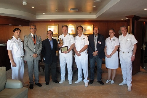 El crucero transporta 1.100 pasajeros y tiene una tripulación de 655 personas. El Crystal Serenity partirá rumbo al puerto de Gibraltar a las 17:00 horas, según informan desde la Autoridad Portuaria de Alicante. Durante la visita del crucero se ha procedido a la tradicional entrega de la metopa para conmemorar la primera llegada al puerto alicantino. El responsable comercial de la Autoridad Portuaria, Luis López, ha hecho entrega al capitán del crucero de un recuerdo de la efeméride, acompañado por el jefe de operaciones de Costablanca Portuaria, Francesco Balbi.
