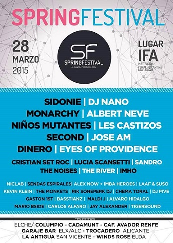 La VII Edición del Spring Festival de Alicante se celebrará en IFA el sábado 28 de marzo. El macroevento musical contará con bandas y DJs referentes en el panorama musical electrónico y el 'indie' pop, como 'Sinodie', 'Monarchy', 'Niños Mutantes', 'Dj Nano', 'Eyes of Providence' y Albert Neve, entre otros muchos.