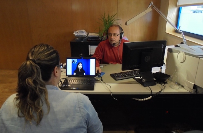 Cuando un cliente requiera de un servicio de interpretación en lengua de signos para realizar sus gestiones de forma presencial en la oficina, se realizará una llamada por videoconferencia a un videointérprete de la Fundación Fesord CV y este se encargará de realizar la interpretación en tiempo real. El servicio estará operativo de 9 a 14 horas de lunes a viernes en la oficina de Hidraqua en Elda (Avenida Las Acacias, 9).