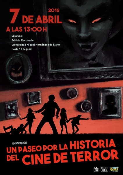 La sala de exposiciones del edificio del Rectorado de la Universidad Miguel Hernández (UMH) acoge la exposición "Un paseo por la historia del cine de terror" hasta el 11 de junio.