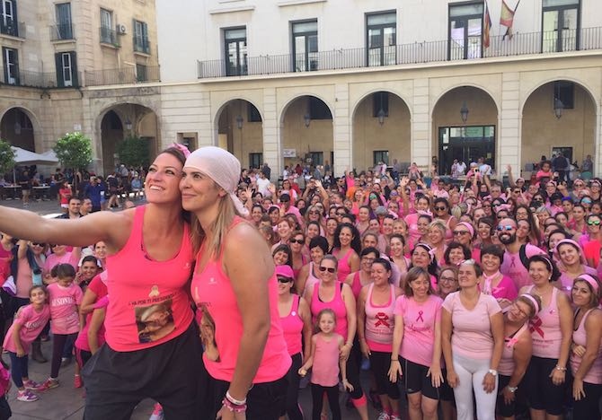 Varios centenares de personas han participado hoy domingo en la Plaza del Ayuntamiento de Alicante en un acto lúdico-deportivo organizado por la Asociación Provincial de Mujeres con Cáncer de Mama (Apamm).