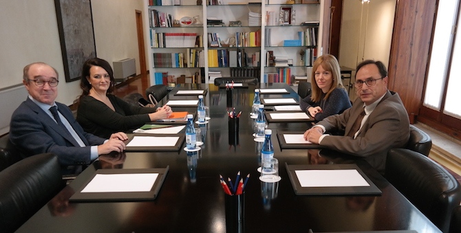 El conseller de Hacienda y Modelo Económico, Vicent Soler, se ha reúne con el presidente de Hosbec, Antonio Mayor, y la secretaria general de la entidad, Nuria Montes.