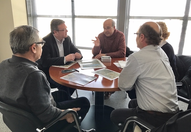 El diputado provincial de Bomberos, Jaume Lloret, se ha reunido hoy (en la imagen) con el alcalde de Villena, Francisco Javier Esquembre, la concejala de Urbanismo, Catalina Hernández, y el edil de Medio Ambiente, José Tomás, en la que también ha participado el Inspector Jefe de Servicio, Vicent Baeza.