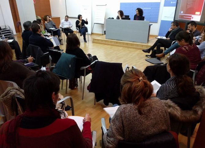 La concejal de Empleo, Sonia Tirado, ha coordinado hoy viernes una jornada de exposición y debate acerca de los programas desarrollados por nueve entidades (en la imagen). Representantes de Cruz Roja Española, Fundación Nova Feina, APSA, Nazaret, Cocemfe, Upapsa, Obra Social Santa Luisa de Marillach, Asociación Adacea Alicante y Aspali han podido exponer y compartir las características de las experiencias y los casos abordados.