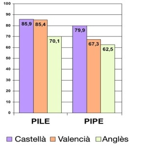 Escola Valenciana ja advertia que en el gràfic resum "observem com els alumnes d'immersió lingüística obtenen resultats substancialment millors en les tres llengües. Les xifres demostren la superior competència en castellà dels alumnes que enceten l'escolarització en valencià. Unes diferències que s'incrementen pel que fa al domini de la llengua autòctona. També en l'anglés les xifres són significatives (...) i demostren més competència en llengua estrangera“. I a més, s'hi observa que el coneixement de les dues llengües oficials és més equilibrat en el PILE que en el PIPE. Demolidor i incontestable!