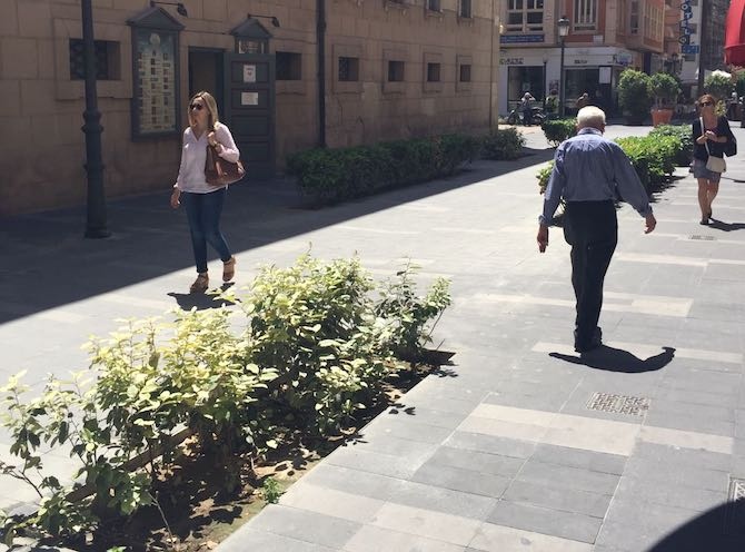 Además, las recientes patologías detectadas en la fachada oeste del Teatro revelan afecciones por filtraciones de agua, por lo que la obra que se llevó a cabo en la calle también contribuye a reducir los puntos en los que se produce la infiltración de agua al terreno próximo al Teatro. La Concejalía de Urbanismo ha eliminado los parterres, pero se han respetado las jardineras con vegetación que separan el tramo central ahora pavimentado de las zonas pavimentadas laterales.