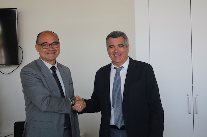 El presidente de Baleària, Adolfo Utor, y el rector de la Universidad de ALicante (UA), Manuel Palomar, han firmado esta mañana un convenio de colaboración para impulsar las actividades formativas que se realicen en la sede universitaria de Dénia y los municipios de la Marina Alta.
