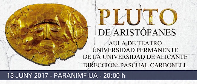 Pascual Carbonell, director del Aula de Teatro de la Universidad Permanente de la UA, reivindica la plena actualidad de la comedia de Aristófanes. "La comedia antigua es la comedia actual, ayer es hoy, Aristófanes está aquí", apunta Carbonell, que afronta el estreno de "Pluto" el martes 13 de junio a las 20:00 horas en el Paraninfo de la Universidad de Alicante, con entrada libre con invitación.