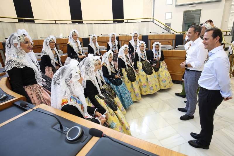 El presidente de la Diputación, César Sánchez, les ha hecho entrega de unas cerámicas del artista alicantino Morant Berrutti y les ha mostrado el Salón de Plenos de la institución, donde ha destacado la importancia que tienen las tradiciones y las fiestas como reclamo turístico y como parte de la identidad de un territorio. El acto ha contado también con la presencia del diputado de Presidencia y Relaciones Institucionales, Carlos Castillo.