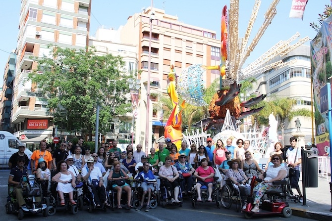 Cerca de 60 personas con discapacidad han visitado las Hogueras del centro de la ciudad con el objetivo de pasar un día de convivencia, ser partícipes de las fiestas de Sant Joan y a su vez comprobar la accesibilidad de las hogueras y racós.