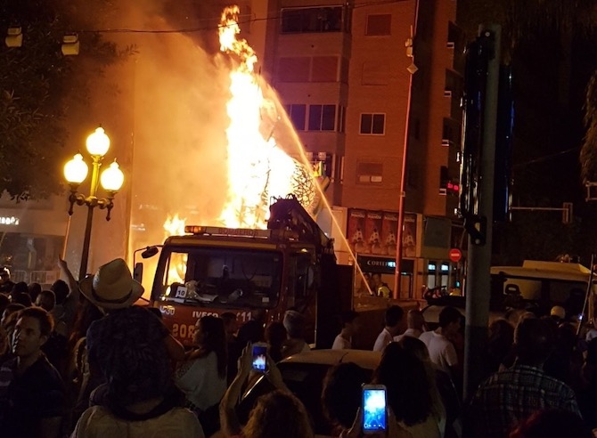El edil explica que a las 02:20 horas ya se había quemado más de 50% de los monumentos, a las 03:30 se llevaba el 70% quemado y sobre las 04:30 ya se había quemado cerca del 100% de las Hogueras.