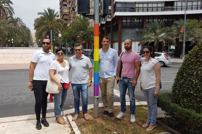 El Ayuntamiento de Alicante ha incorporado la bandera arcoiris en 18 semáforos de la Plaza de los Luceros y de su entorno.