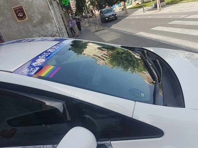 Los taxis de Alicante lucen desde hoy la bandera arcoiris con motivo de la semana del Orgullo LGTBI 2017. Los vehículos la llevarán durante una semana. La iniciativa es pionera en España.