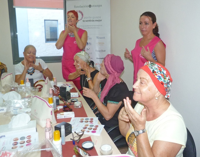 Estos talleres están destinados a pequeños grupos de mujeres y cuentan también con la colaboración de la Asociación Española Contra el Cáncer (AECC) y de voluntarios profesionales en cosmética que guían a las pacientes a través de los 12 pasos esenciales para el cuidado de la piel y el uso del maquillaje. En estas sesiones, las pacientes reciben un neceser de productos para realizar estos cuidados, donados por las empresas patrocinadoras.