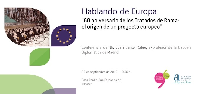 El Instituto Alicantino de Cultura Juan Gil-Albert acoge el lunes 25 en la Casa Bardín la charla de Juan Cantó “60 aniversario de los Tratados de Roma: el origen de un proyecto europeo”.