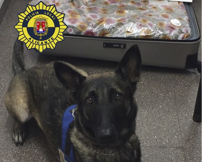 Agentes de la Unidad Canina de la Policía Local de Alicante han detenido en la estación de autobuses a un hombre tras intervenirle más de 11 kilogramos de marihuana en el interior de una maleta.