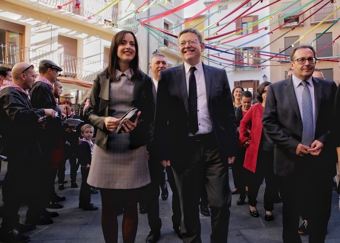 Tras ser testigo de la lectura del pregón y cortar la cinta de la feria desde el balcón del Ayuntamiento, Puig ha asegurado que el Consell tramitará lo más rápido posible la declaración de la Fira de Tots Sants de Cocentaina como Bien de Interés Cultural (BIC).