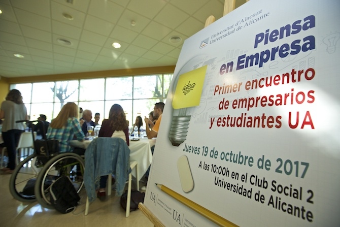 "Piensa en empresa" es una iniciativa organizada por el vicerrectorado de Estudiantes y Empleo, con la colaboración del Consejo Social y el Consejo de Estudiantes de la UA y la Diputación de Alicante.