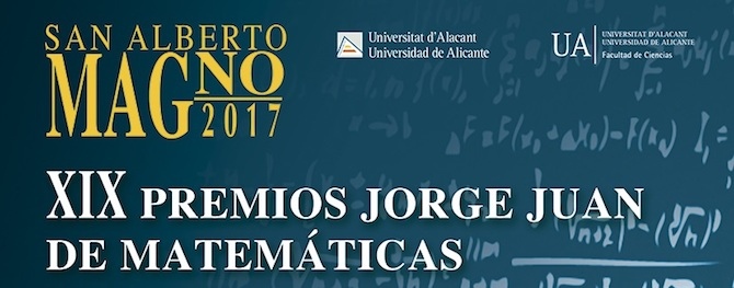 El plazo de inscripción para participar en los Premios Jorge Juan de Matemáticas de la UA estará abierto hasta el 26 de enero de 2018 a través de la web de la Facultad de Ciencias.  Las pruebas tendrán lugar el próximo 30 de enero, de 16 a 19 horas, en el Seminario de Matemáticas (edificio Fase II de Ciencias, planta baja izquierda).