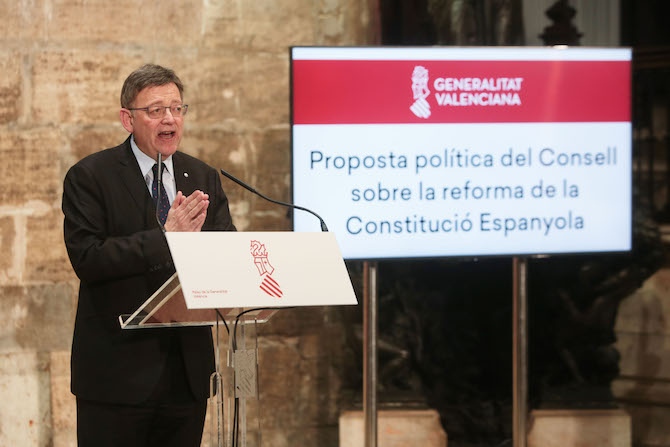 La Generalitat Valenciana ha presentado su propuesta para reformar la Constitución Española. El Consell de Ximo Puig (PSOE) y Mónica Oltra (Compromís) quiere que España sea un Estado Federal y que se eliminen las provincias.
