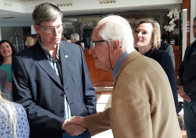 Es emocionante saludar con una apretón de manos a una persona que ha participado como mediador en más de 200 conflictos internacionales para buscar vías de entendimiento entre partes enfrentadas y, a veces, irreconciliables. Antaño un apretón de manos era un signo de entendimiento, de acuerdo, de conformidad; hoy se ha convertido en un gesto, en un saludo y poco más.