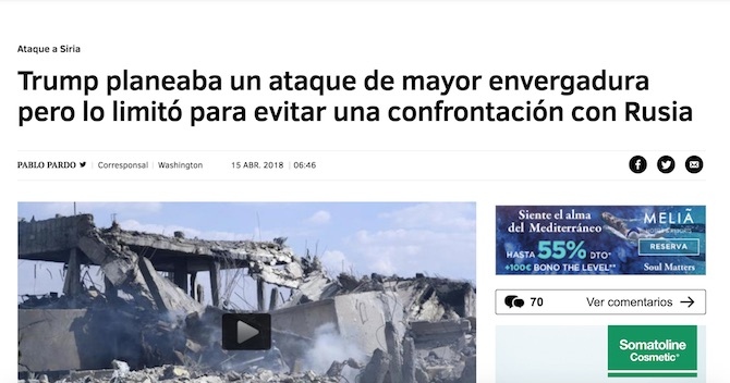 Con incertidumbre, afectado, preocupado. Así es como me he despertado y he abierto las puertas a este nuevo día cuando a primera hora de la mañana me ha llegado la notificación de que los aliados habían atacado con bombas territorio sirio. Comenzaba lo inevitable, la escalada de violencia e histeria mundial quedaba representado por cada una de las bombas que los británicos, estadounidenses y franceses han arrojado a los dominios de Bashar Al Assad.