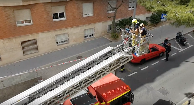Pasadas las 15:00 horas los bomberos intervinieron en la fachada del Hospital Vithas Perpetuo Socorro de la calle Valero Bermejo, donde se habían desprendido partes de una cornisa. Los efectivos del SPEIS utilizaron un vehículo con escalera. La zona, junto a la parada del tranvía MARQ-Castillo, quedó cerrada al paso de peatones. No es la primera vez que se produce la caída de partes de la fachada de esta clínica.