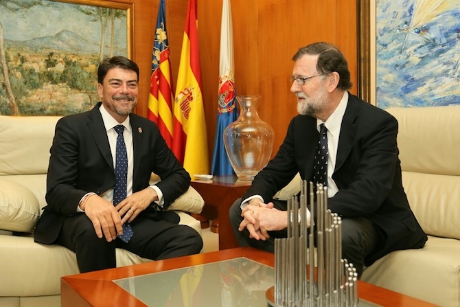 Antes de finalizar la visita en el Ayuntamiento de Alicante el alcalde departió unos minutos en su despacho con el presidente del Gobierno.
