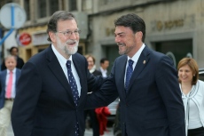 El alcalde de Alicante, Luis Barcala, ha recibido al presidente del Gobierno en la puerta del Ayuntamiento. Mariano Rajoy ha saludado a los miembros de la corporación municipal presentes en el acto a su llegada.
