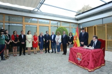 La visita ha continuado en las dependencias de Alcaldía donde el presidente del Gobierno ha firmado en el Libro de Honor de Alicante. En este acto, además de miembros de la corporación, han estado presentes el delegado del Gobierno en la Comunidad Valernciana, Juan Carlos Moragues; el Subdelegado de Gobierno, Jose Miguel Saval; el presidente provincial del PP, José Císcar; el presidente de la Diputación, César Sánchez, así como José Manuel García-Margallo y Eva Ortiz.