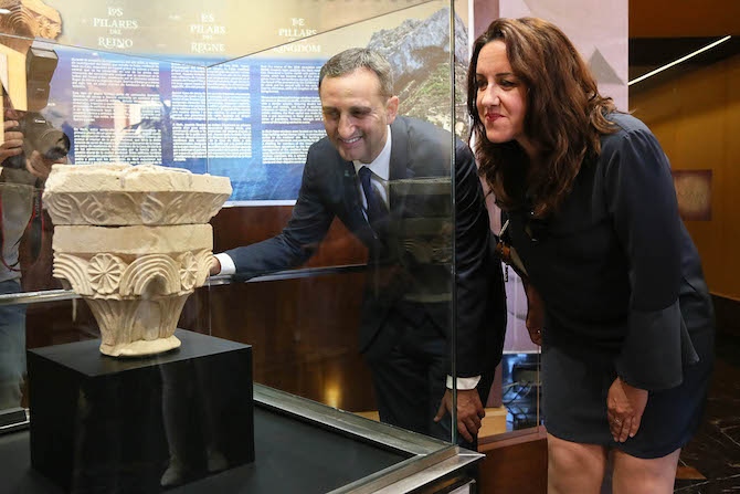 El vestíbulo del Museo Arqueológico de Alicante (MARQ) exhibe desde hoy el capitel gótico de la Pobla Medieval de Ifach en Calp. La pieza fue descubierta en 2016 por el equipo de investigación del museo.