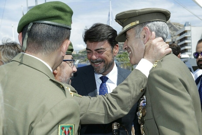 El alcalde de Alicante, Luis Barcala, ha participado hoy en la Jura de Bandera para civiles, un acto celebrado en la zona Volvo del Puerto por el Mando de Operaciones Especiales (MOE). Junto a Barcala han asistido autoridades políticas, así como mandos militares y representantes de los cuerpos y fuerzas de seguridad del Estado. Entre los aistentes estaban el exminictro de Asuntos Exteriores, José Manuel García-Margallo, y la senadora Asunción Sánchez Zaplana.