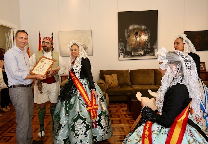 La recepción de las Bellesas ha tenido lugar en el Palacio Provincial. Allí el presidente de la Diputación de Alicante, César Sánchez, ha saludado a la Bellesa Adulta y la Bellesa Infantil de la Hoguera Diputación-Renfe, Ainara García y Alba Rodríguez-Barbero, respectivamente. Ambas han llegado acompañadas por sus Damas y por el presidente de la Foguera, Roberto Fernández; y el presidente infantil, César Pastor.