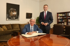 El presidente de la Diputación de Alicante, César Sánchez, ha recibido esta mañana en el Palacio Provincial al presidente de la Real Academia de Gastronomía de España, Rafael Ansón, para trabajar las líneas estratégicas que coloquen a Alicante como sede definitiva de la Academia de Gastronomía del Mediterráneo, así como para abordar la colaboración institucional en esta iniciativa.