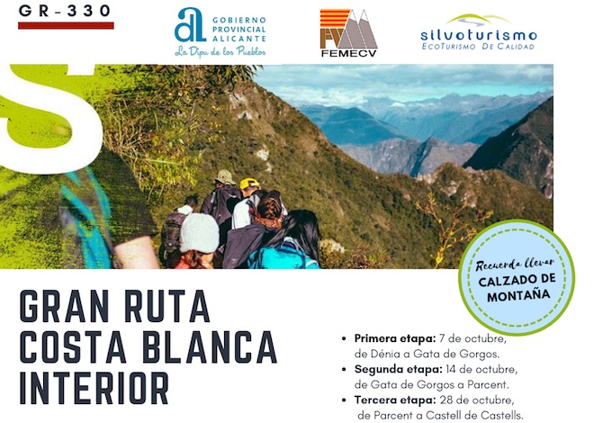 Con el objetivo de difundir y dar a conocer todas y cada una de las etapas que componen la Gran Ruta Costa Blanca Interior, la Diputación de Alicante ha organizado una serie de salidas senderistas.