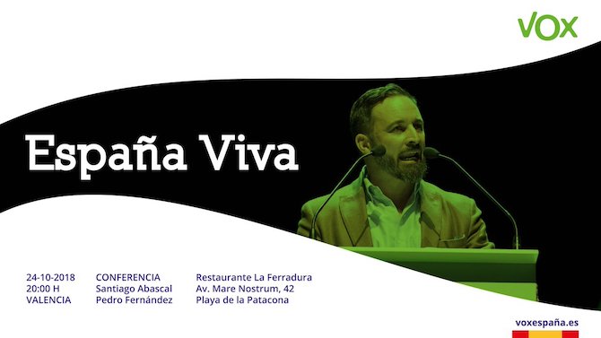 El presidente de Vox, Santiago Abascal, ha ofrecido una rueda de prensa antes de participar en un acto público bajo el lema "La España Viva" en Alboraya (Valencia), con aforo para unas 1.000 personas, según la organización.