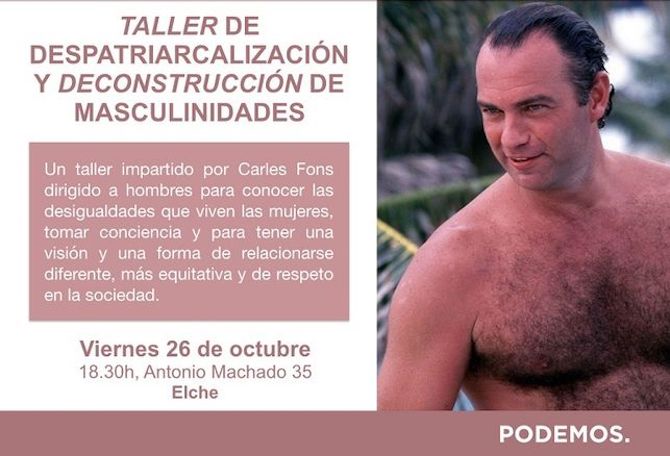 Podemos Elche ha utilizado la imagen del cantante y presentador Bertín Osborne para dar a conocer un taller dirigido a hombres sobre la 'deconstrucción y despatriarcalización de masculinidades'.