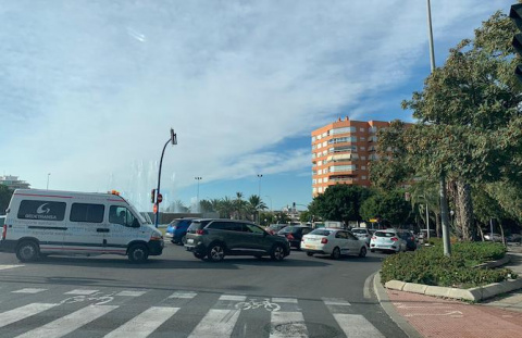 La entrada a Alicante por la avenida de Dénia ha sido esta mañana un auténtico caos, con cientos de vehículos retenidos por el corte al tráfico de la avenida desde la glorieta del colegio Inmaculada-Jesuitas.