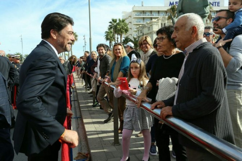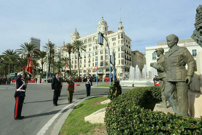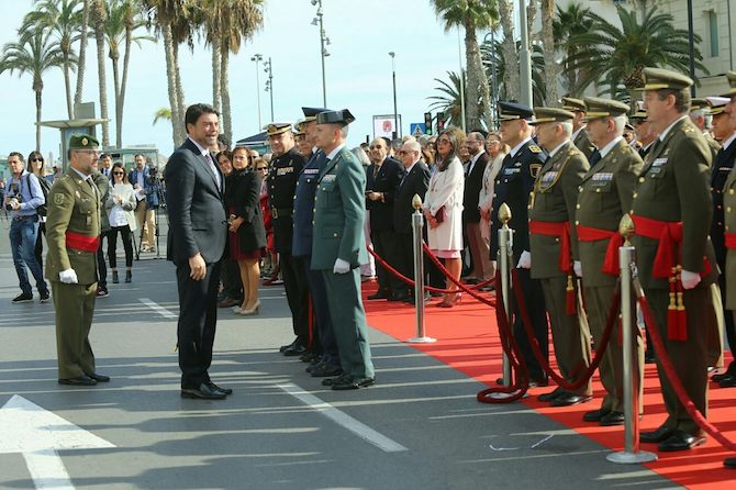 Posteriormente se ha procedido a la realización del acto militar en la Plaza del Mar, en el que se han izado la Bandera Nacional, al mismo tiempo que se disparaban un total de 21 salvas de ordenanza. A continuación se ha procedido al acto de homenaje a los caídos con la entrega de una corona de flores al monumento al Soldado de Reemplazo y finalmente ha tenido lugar el espectacular sobrevuelo de la Patrulla Águila.
