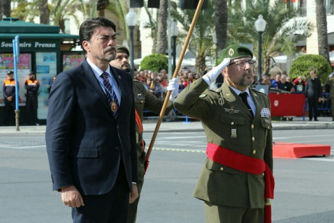 El acto ha sido presidido por el General Jefe del Mando de Operaciones Especiales (MOE) del Ejército de Tierra y Comandante Militar de Alicante, Demetrio Muñoz García, y ha contado con la presencia también del subdelegado del Ministerio de Defensa, Juan Bosco Montero; el Comandante Naval, Gustavo Adolfo Gutiérrez; y el Teniente Coronel Jefe Interino de la Guardia Civil, Francisco Rodríguez Lorenzo.