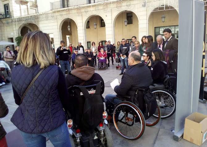 El miércoles se celebraron concentraciones en 37 ciudades españolas, entre ellas en la Plaza del Ayuntamiento de Alicante, para reclamar que se modifique la Ley de Propiedad Horizontal y eliminar así la actual limitación económica de 12 mensualidades de gastos de la comunidad para que sea obligatorio realizar las reformas de accesibilidad de la misma forma que las comunidades vecinales afrontan otras reformas ineludibles derivadas de las condiciones estructurales, la estanqueidad, la habitabilidad y la seguridad.