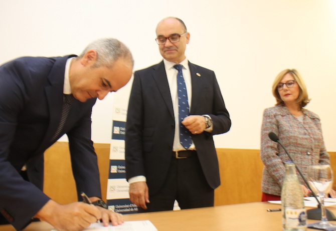 El recor de la UA, Manuel Palomar, y la secretaria general, Esther Algarra, presidieron el acto en que el decano, en primer lugar, y los vicedecanos después, rubricaron sus nombramientos.
