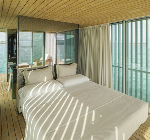 El primer prototipo de este nuevo proyecto empresarial se ubica en el Club Náutico de Dénia. Se trata de un alojamiento sobre el agua con diseño minimalista, funcional y respetuoso con el medio ambiente que consigue que el huésped experimente el entorno con los cinco sentidos.