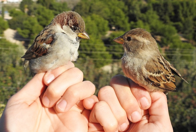 * Imagen: Estación de anillamiento de la Marjal. gorriones comunes. / Elías Gomis