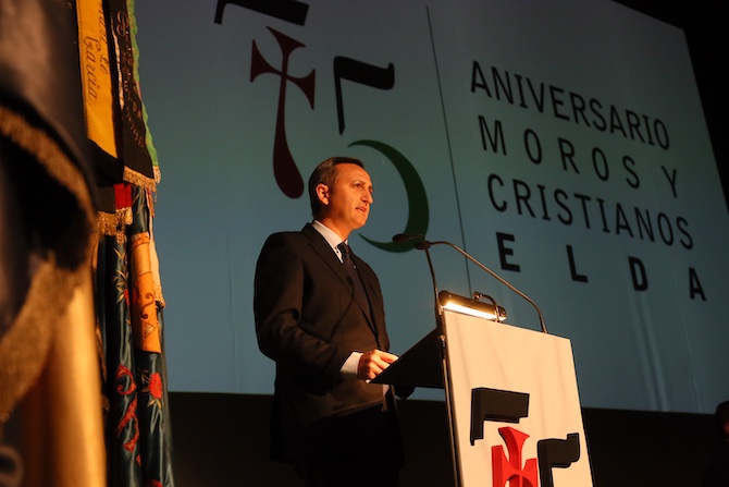 El presidente de la Diputación de Alicante, César Sánchez, ha participado esta tarde en el acto institucional que da comienzo a la celebración del 75 aniversario de las fiestas de Moros y Cristianos de Elda.