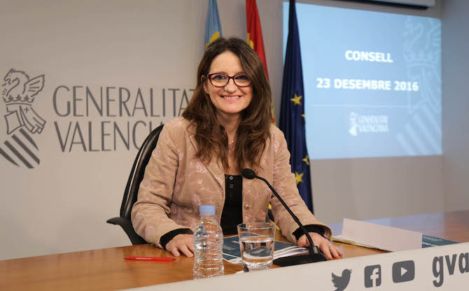 La vicepresidenta y consellera de Igualdad, Mónica Oltra (en la imagen), ha indicado que la convocatoria supone aplicar la fórmula de concierto social con entidades, que sustituye a las subvenciones, a servicios sociales especializados LGTBI, que se integrarán en la Red Pública Valenciana de Servicios y de atención a la igualdad en la diversidad.
