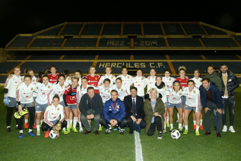 * Imágenes: Entrenamiento hoy lunes en el Rico Pérez de la Selección Española de Fútbol Femenina, al que ha asistido el alcalde de Alicante, Luis Barcala, y la concejal de Deportes, Marisa Gayo
