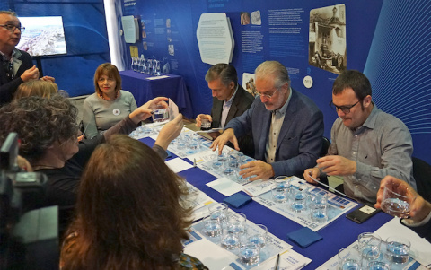La firma de este convenio contó también con la asistencia de los miembros del Comité Ejecutivo de ARA, participaron en una cata de aguas (imagen inferior). En esta actividad sensorial pudieron degustar a ciegas aguas de diferente procedencia (grifo, pozo, desalación, mineral…), seleccionadas en base a su mineralización y tratamiento, para valorar aspectos organolépticos, como el olor, sabor y color, y definir a continuación sus preferencias y hábitos de consumo.
